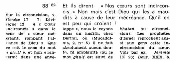 Le mot ghulf, traduit ici par « enveloppés et impénétrables », signifie en fait non-circoncis. La mention est explicite pour Muhammad Hamidullah (édition originale de 1959) - mais ce verset est modifié dans l'édition révisée (Ligue Islamique Mondiale).